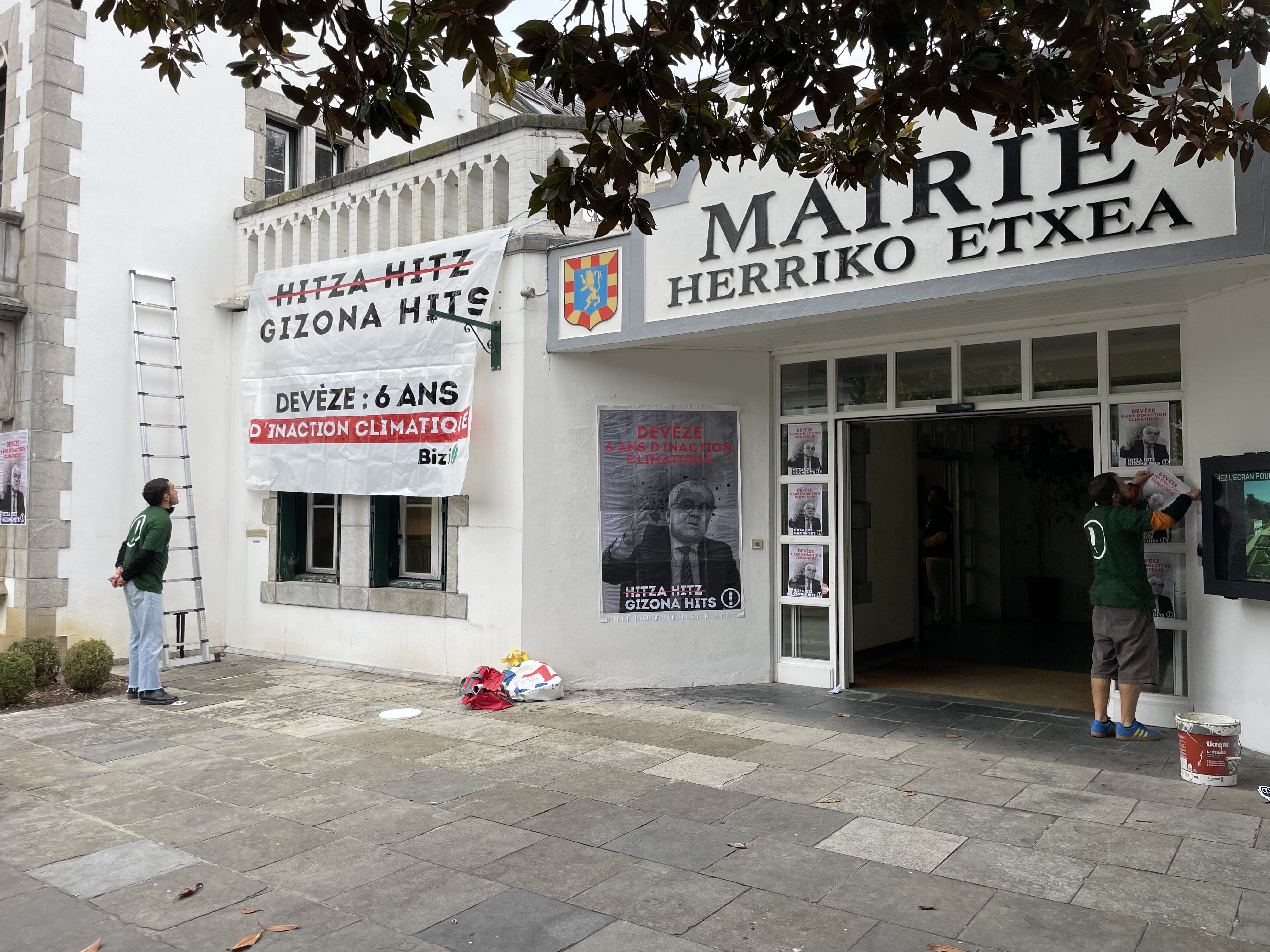 Asteazken honetan, urriaren 15ean, Biziko hogei bat ekintzailek irmoki salatu dute Christian Devèze Kanboko auzapezaren “klimaren arloko sei urteko geldialdia”, herriko etxearen aitzinaldea afixez estaliz.